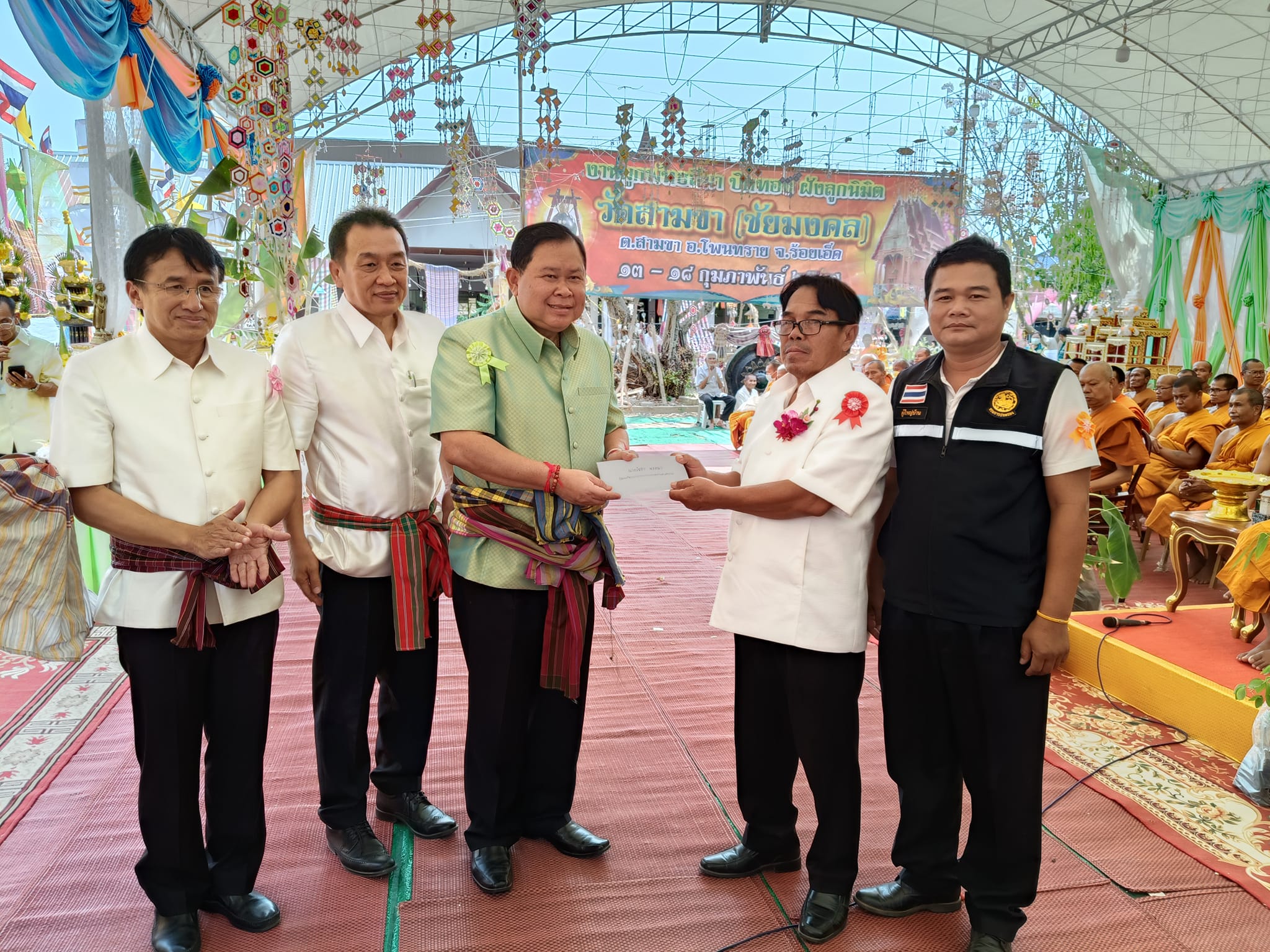 ในวันอาทิตย์ที่ 18 ก.พ.2567 นายไชยา พรหมา รัฐมนตรีช่วยว่าการกระทรวงเกษตรและสหกรณ์ เป็นประธานฝ่ายฆราวาส ในพิธีผูกพัทธสีมา ปิดทองฝังลูกนิมิต โดยมี ผู้บริหารและเจ้าหน้าที่ในสังกัดกระทรวงเกษตร พร้อมด้วย นายไพโรจน์ จิตจักร ปลัดจังหวัดร้อยเอ็ด นายเศกสิทธิ์ ไวนิยมพงศ์ นายกองค์การบริหารส่วนจังหวัดร้อยเอ็ด นายกิตติ สมทรัพย์ สมาชิกสภาผู้แทนราษฎรจังหวัดร้อยเอ็ด นายจิรศักดิ์ ศรีบุญลือ นายอำเภอโพนทราย ✅ เทศบาลตำบลสามขา นำโดย นายสกาว เมฆานายกเทศมนตรีตำบลสามขา พร้อมด้วยคณะผู้บริหาร ประธานสภาสมาชิกสภาเทศบาล หัวหน้าส่วนราชการ พนักงานเจ้าหน้าที่เทศบาล และประชาชนในพื้นที่ร่วมเข้าร่วมพิธีในครั้งนี้ ณ วัดสามขา (ชัยมงคล) ตำบลสามขา อำเภอโพนทราย จังหวัดร้อยเอ็ด