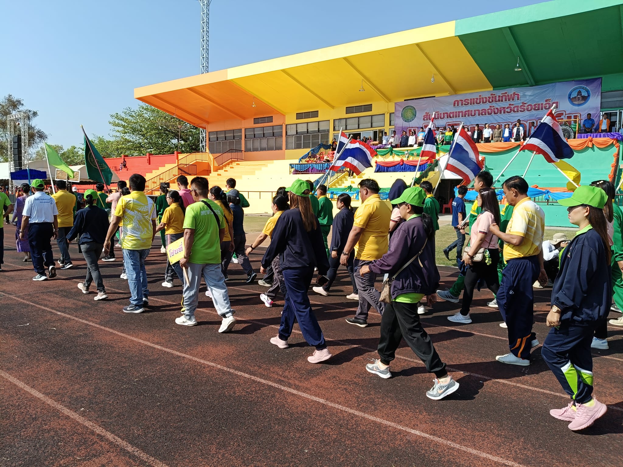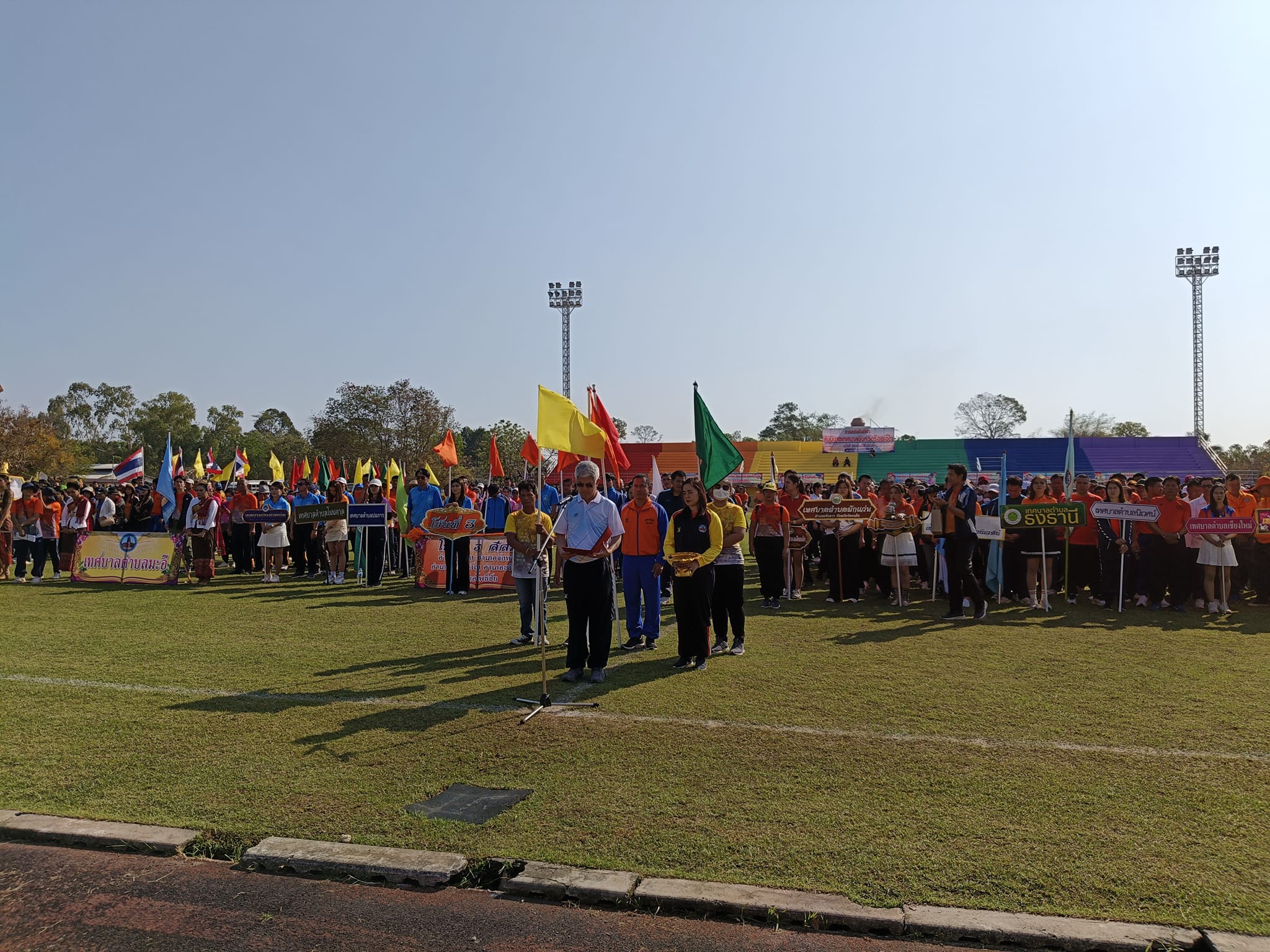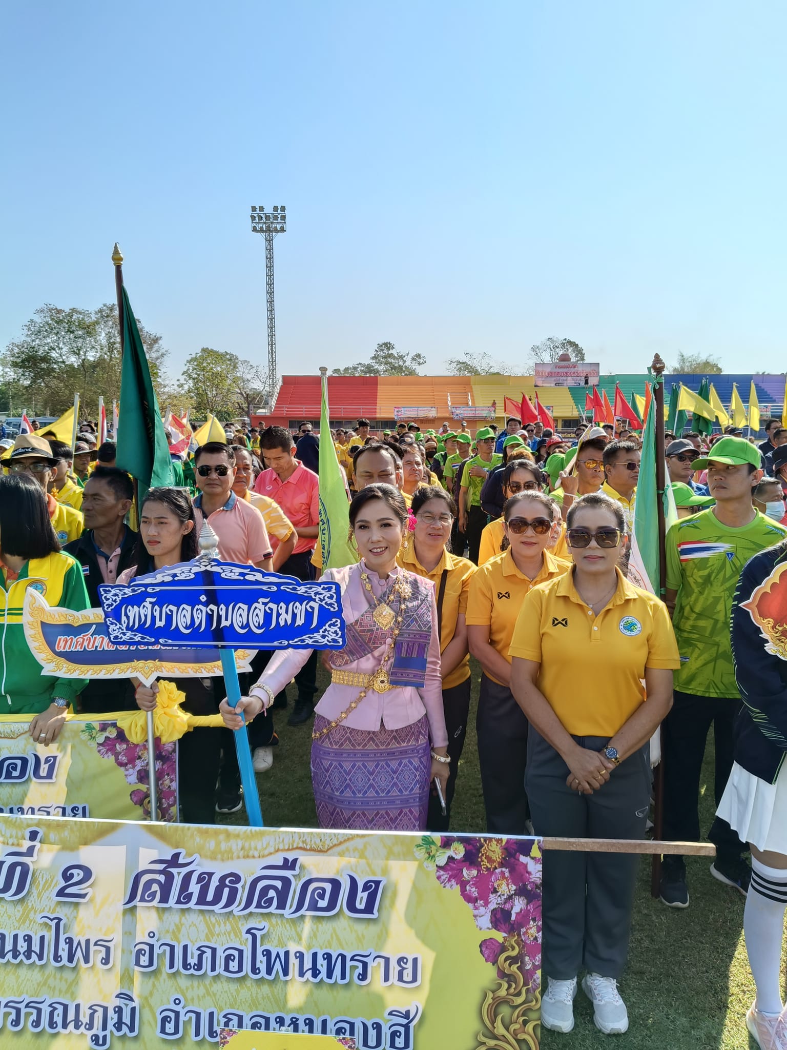 กีฬาสัมพันธ์สันนิบาตเทศบาลจังหวัดร้อยเอ็ด (สันนิบาตเกมส์) ครั้งที่ 13 ***วันศุกร์ที่ 16 กุมภาพันธ์ 2567 เวลา 07.30 น. นายสกาว เมฆา นายกเทศมนตรีตำบลสามขา พร้อมกับคณะผู้บริหาร ประธานสภาสมาชิกสภาเทศบาล ปลัดเทศบาล หัวหน้าส่วนราชการ พนักงานเทศบาล เจ้าหน้าที่เทศบาลตำบลสามขา ✅เข้าร่วมพิธีเปิดการแข่งขันและแข่งขันกีฬาสันนิบาตเทศบาลจังหวัดร้อยเอ็ด ประจำปี 2567 เพื่อเชื่อมความสัมพันธ์ระหว่างหน่วยงาน เป็นการสร้างความสามัคคี ตลอดจนสร้างความสัมพันธ์อันดีต่อองค์กรปกครองส่วนท้องถิ่น ณ สนามกีฬากลางจังหวัดร้อยเอ็ด