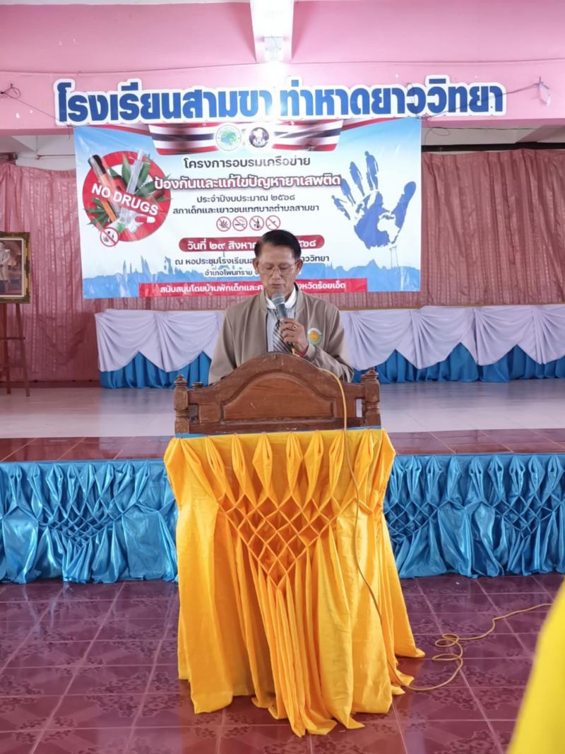 วันศุกร์ที่ 29 สิงหาคม 2568 นายนริศ สังสนา นายกเทศมนตรีตำบลสามขา เป็นประธานเปิดโครงการอบรมเครือข่ายสภาเด็กและเยาวชน ป้องกันและแก้ไขปัญหายาเสพติด ประจำปี 2568 พร้อมด้วยคณะผู้บริหารหัวหน้าส่วนราชการ ร่วมพิธีเปิด โดยมีวัตถุประสงค์เพื่อเป็นการส่งเสริมกิจกรรมการป้องกันและแก้ไขปัญหายาเสพติดให้เกิดขึ้นอย่างเป็นรูปธรรม และเพื่อเป็นการสร้างเครือข่ายแกนนำเด็กและเยาวชนในพื้นที่ให้มีภูมิคุ้มกันและป้องกันภัยยาเสพติด ณ โรงเรียนสามขาท่าหาดยาววิทยา