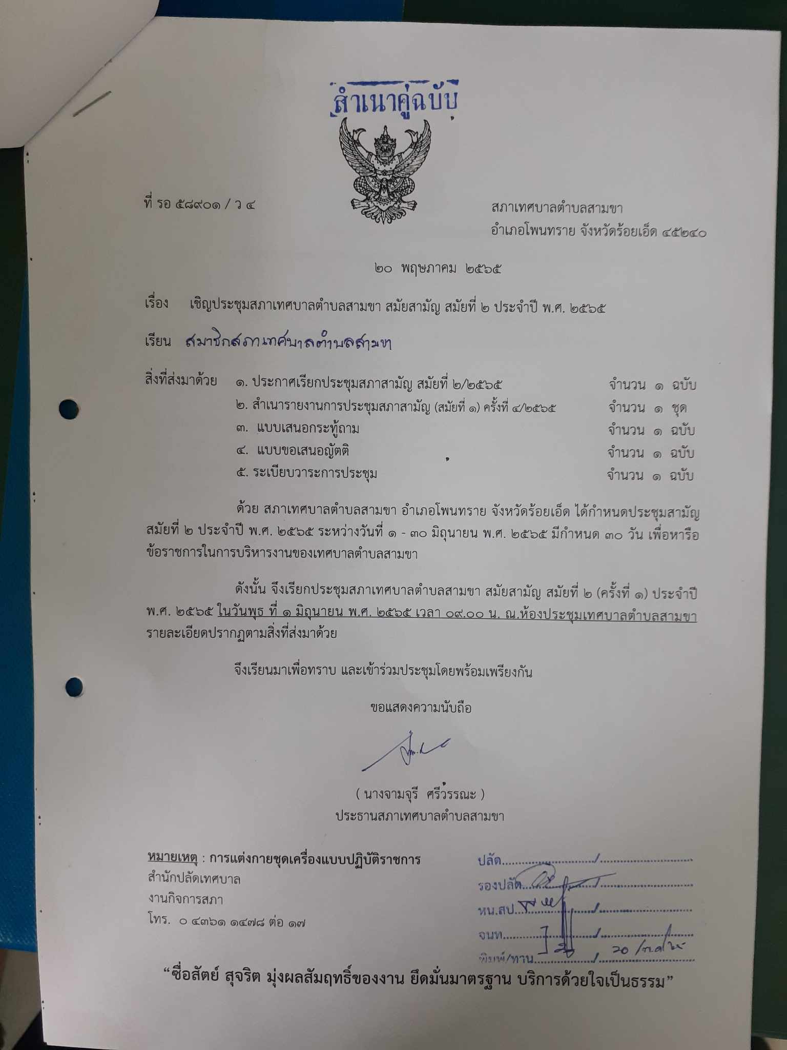 เชิญประชุมสภาเทศบาลตำบลสามขา สมัยสามัญสมัยที่2 ประจำปี2565