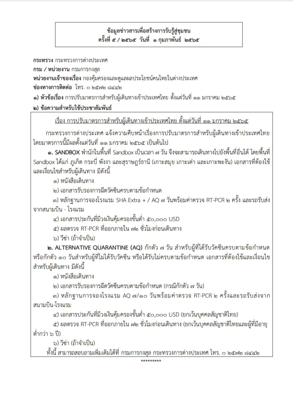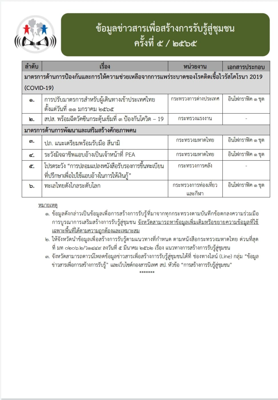 ข้อมูลข่าวสารเพื่อสร้างการรับรู้สู่ชุมชุน ครั้งที่ 5/2565