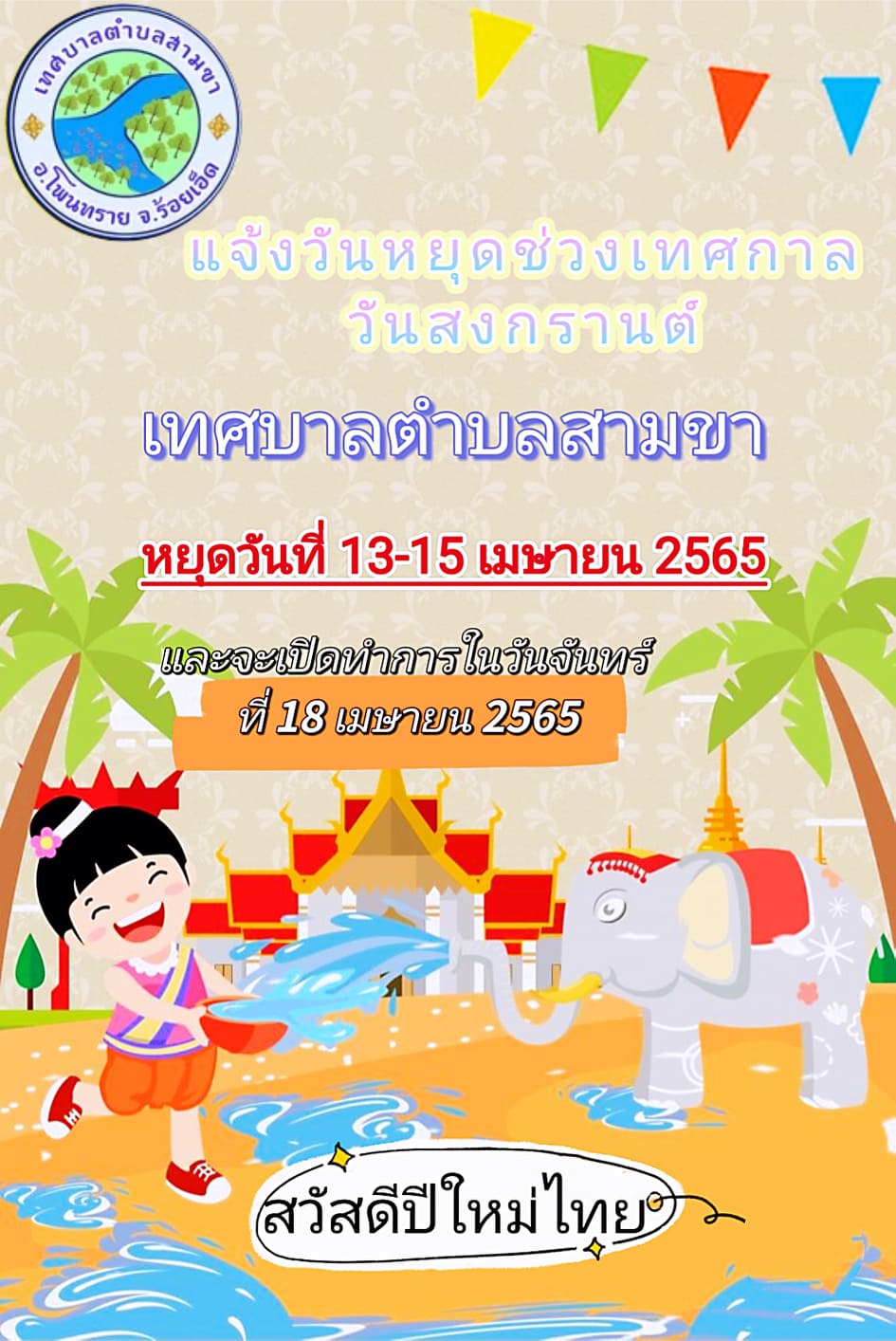 แจ้งวันหยุดทำการ ในช่วงเทศกาลสงกรานต์ ตั้งแต่วันที่ 13 เมษายน ถึงวันที่ 15 เมษายน 2565 และจะเปิดทำการใน วันจันทร์ที่ 18 เมษายน 2565