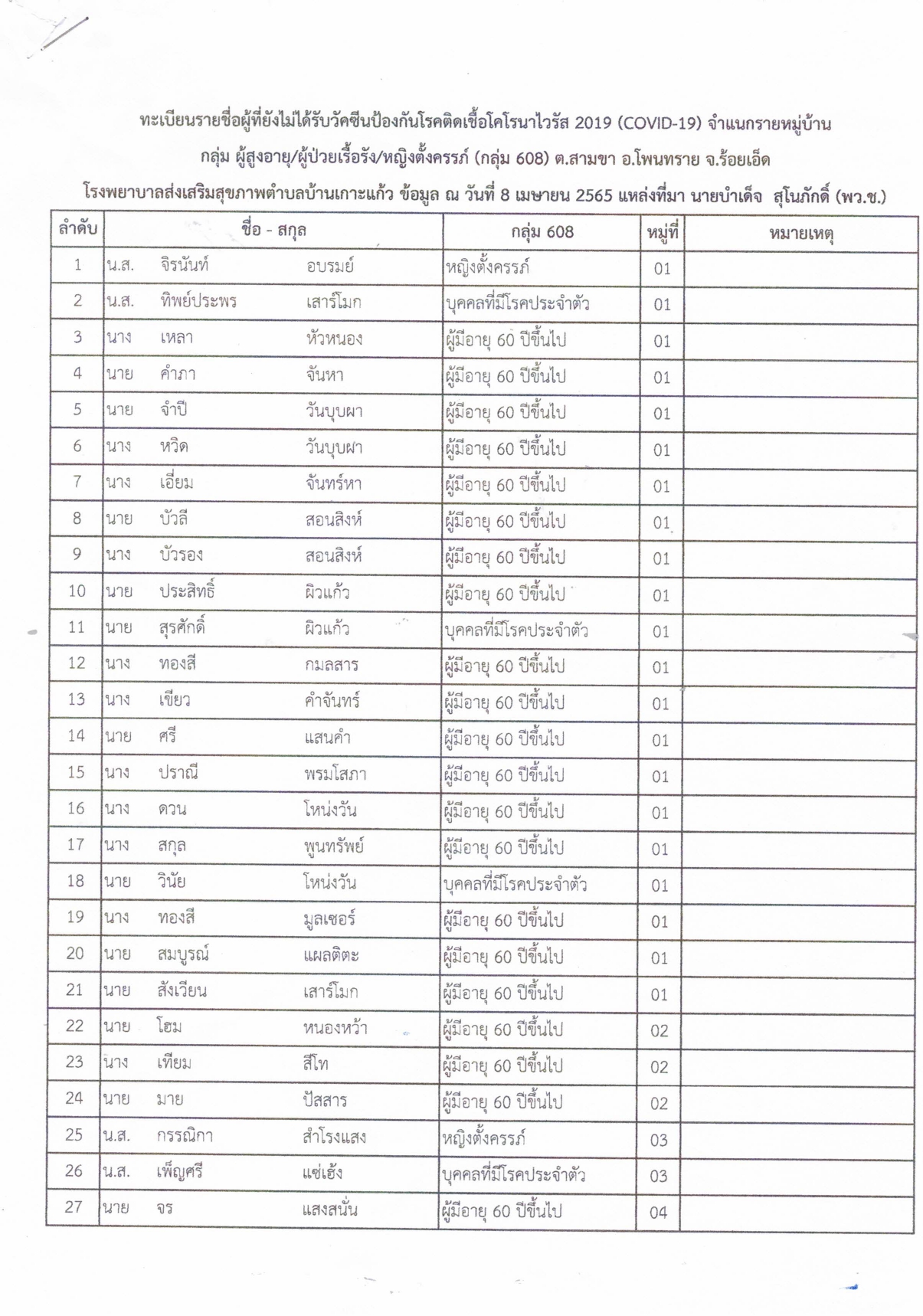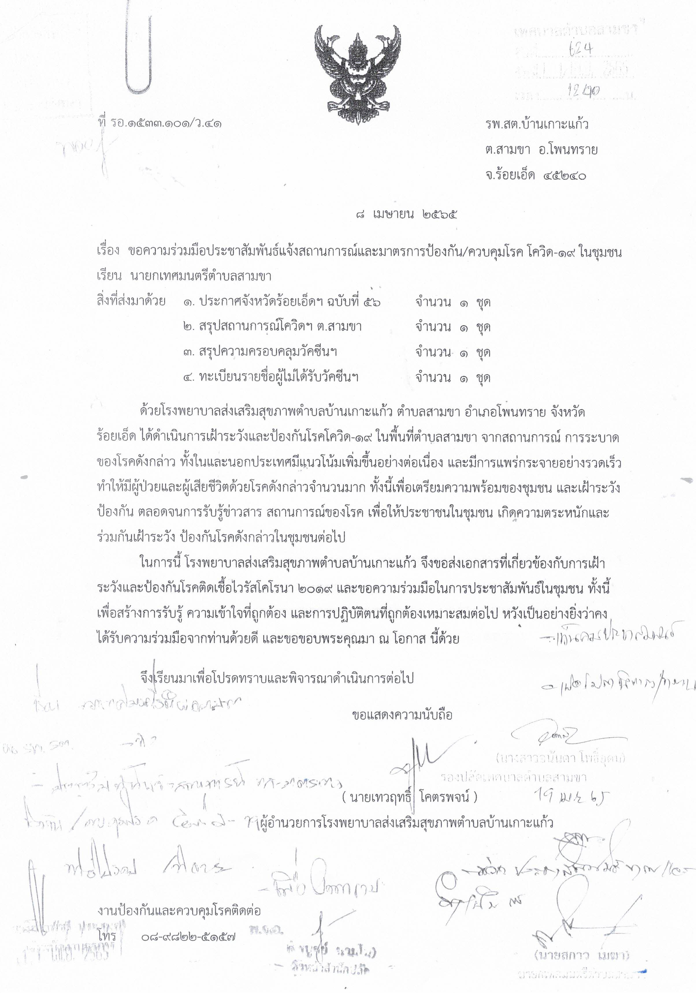 แจ้งประชาสัมพันธ์ สถานการณ์และมาตรการป้องกัน/ควบคุมโรค โควิด -19 ในชุมชน
