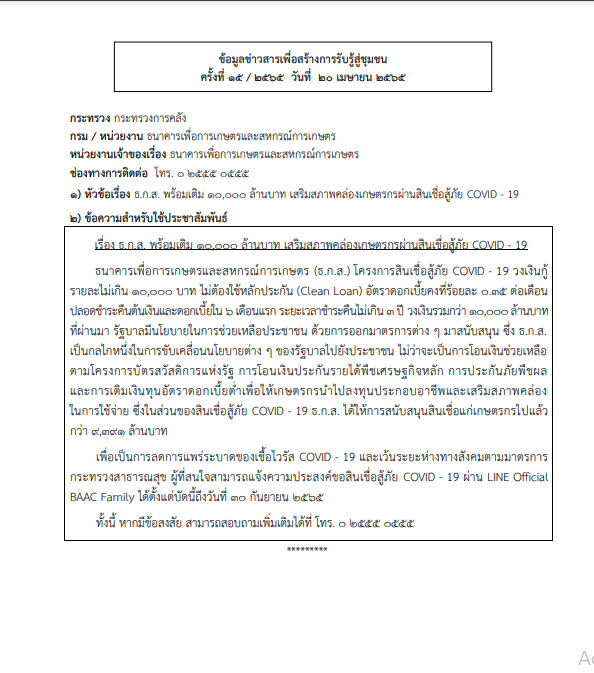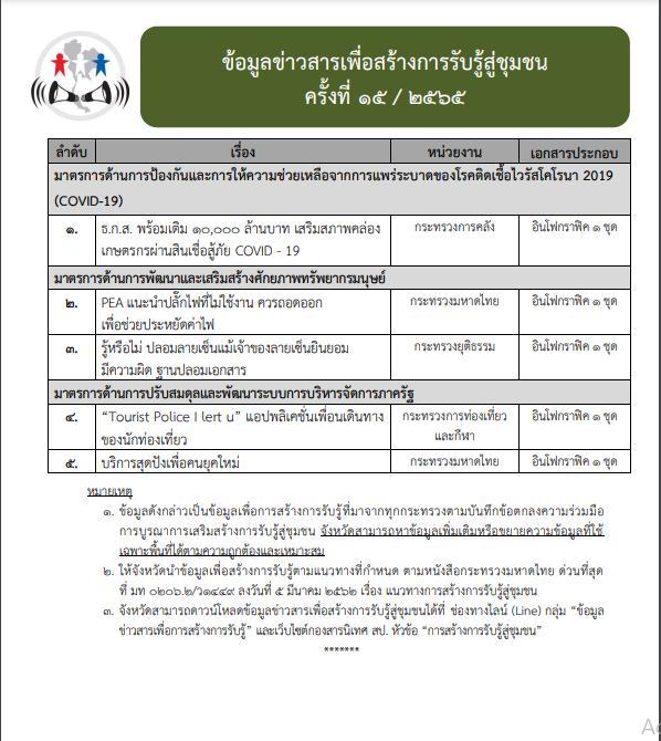ข้อมูลข่าวสารเพื่อสร้างการรับรู้สู่ชุมชน ครั้งที่ 15/5265