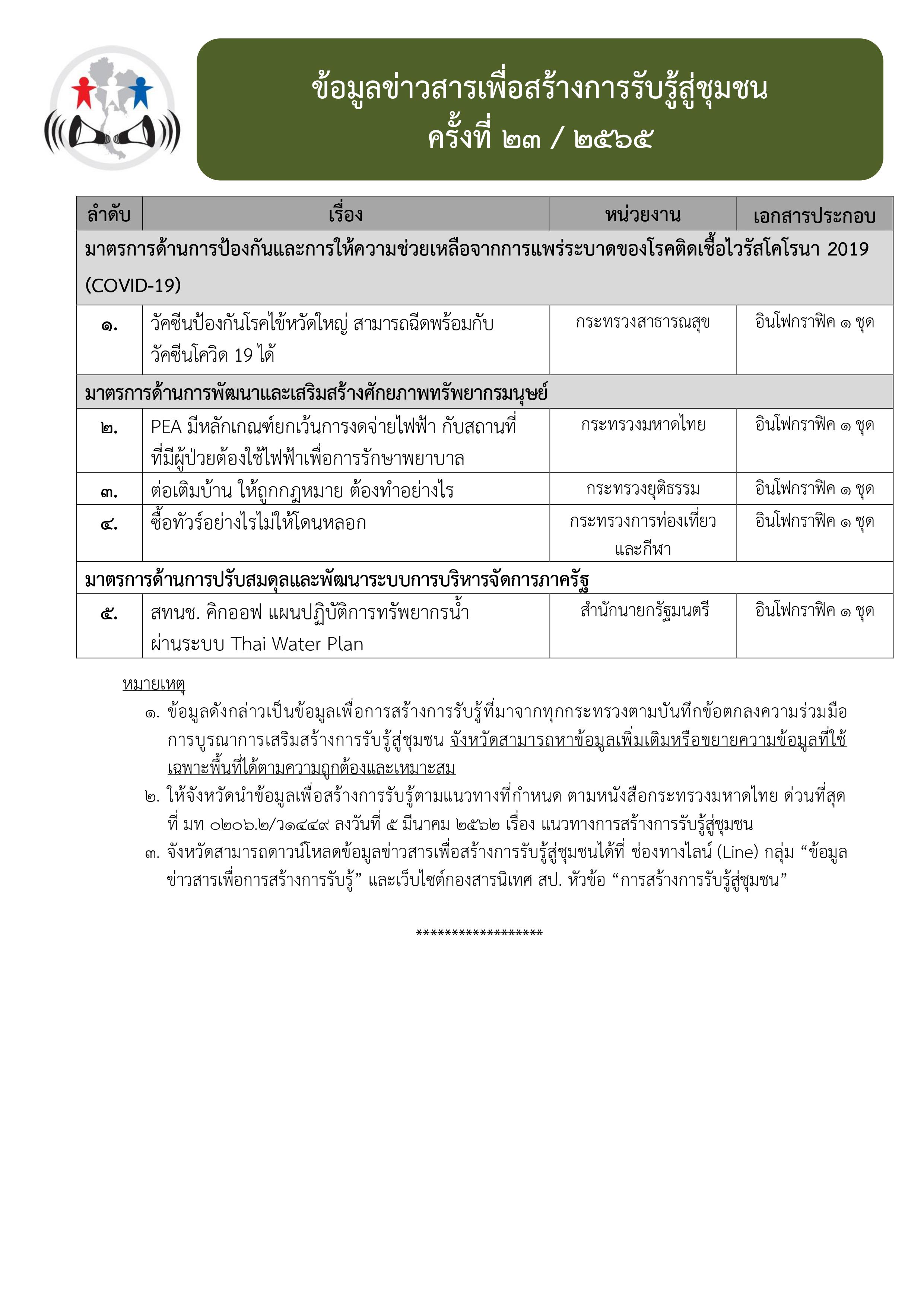 ข้อมูลข่าวสารเพื่อสร้างการรับรู้สู่ชุมชน ครั้งที่ 23 /2565