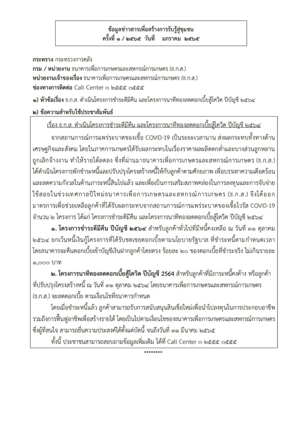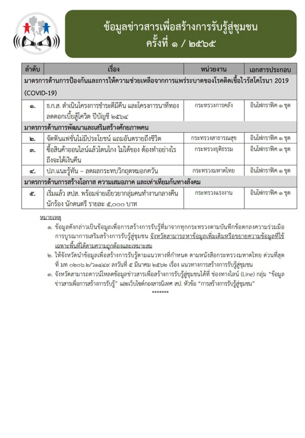 ข้อมูลข่าวสารเพื่อสร้างการรับรู้สู่ชุมชุน ครั้งที่ 1/2565