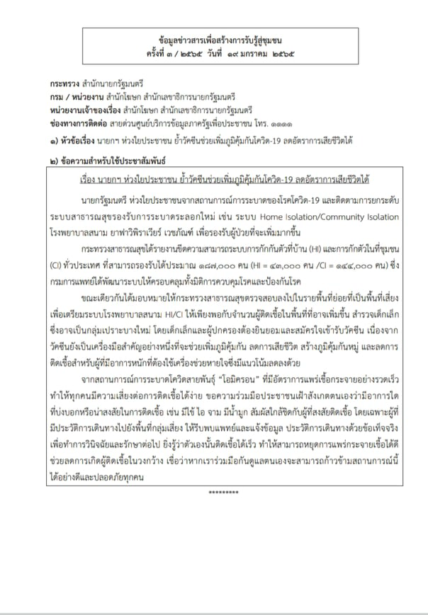 ข้อมูลข่าวสารเพื่อสร้างการรับรู้สู่ชุมชุน ครั้งที่ 3/2565