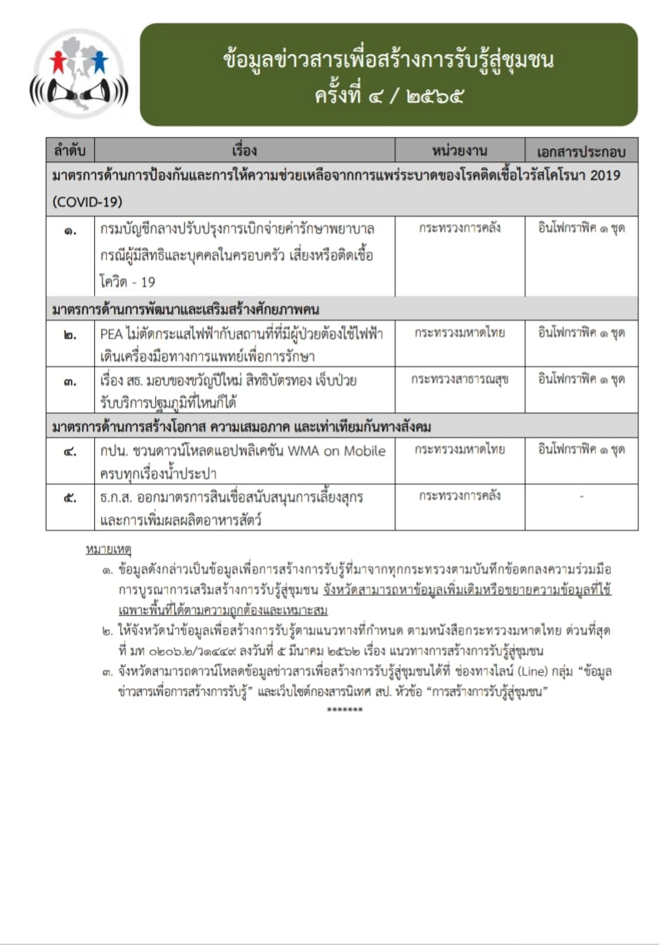 ข้อมูลข่าวสารเพื่อสร้างการรับรู้สู่ชุมชุน ครั้งที่ 4/2565